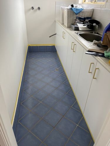 A simple refresh using Dulux renovation range tile paint and some new brass cupboard handles from Bunnings.