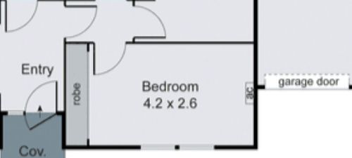 Bedroom is correct. Wardrobe is 60cm deep, it has a small box for ducted heating on the side next to the door.