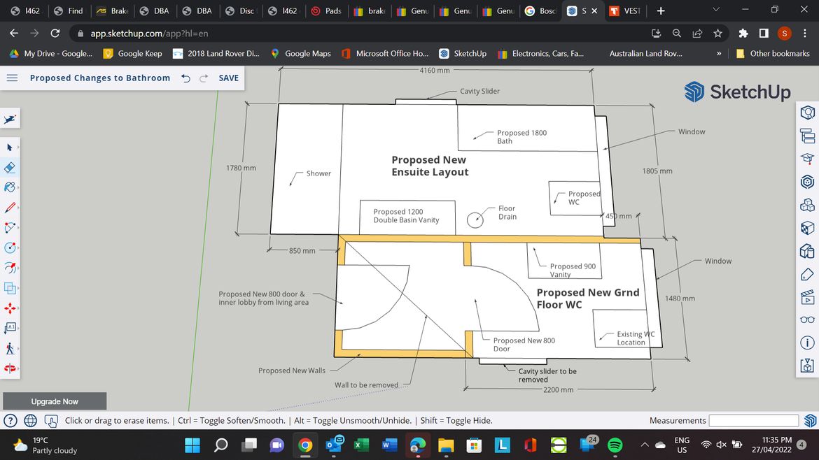 I'm looking for advice on how the drainage would most likely be installed/altered from existing to proposed layouts below. I'm hoping to get an idea of the extent of the work involved. I understand the floor will have to be cut and dug up then made good once the drainage has been installed. Thanks in advance.