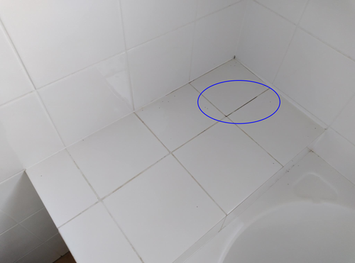Some of the grout are missing from the tiles next to the bathtub.