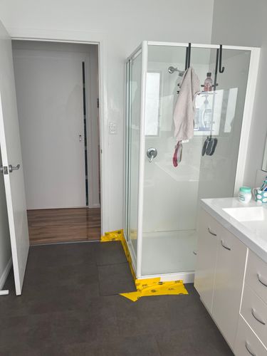 I would like to tile the floor (currently Lino) and a section of the wall and install a stand alone glass shower screen.