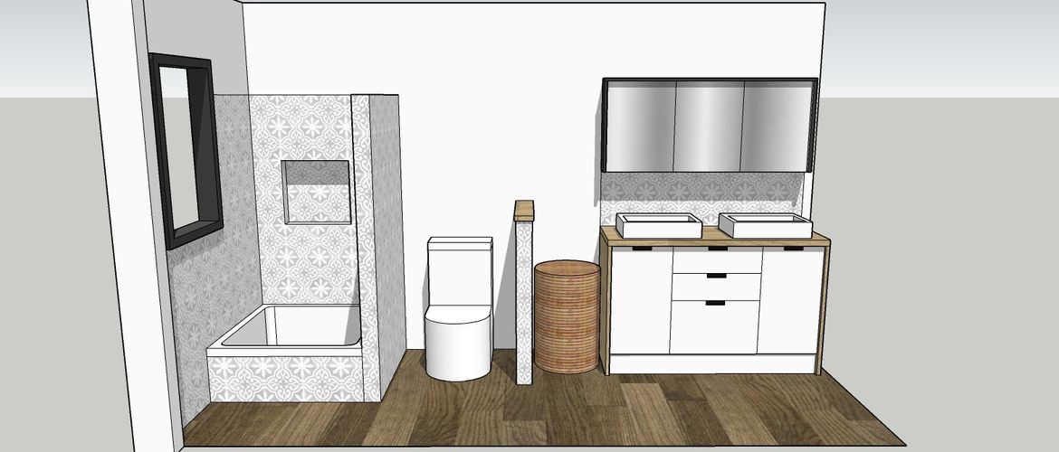 Welcome to Bunnings Workshop! Thank you for sharing your project with the workshop community. I see @MitchellMc has given you a very a very good idea of a possible layout. Since you've proposed a shower over bath there is a bath that does not take up a great deal of space and is almost the same size as a standard shower enclosure! The Bella 910 Inset Shower Bath is perfect for your application. When you want a soak simply push the plug to close and you can soak in the tray itself. It is of course for those times that you feel that a quick soak would help or perhaps when the kids want a bath! I've included the dimensions at the bottom of the post. Now when you are at the far end of your bathroom you will see that I've hidden the toilet in a small wall. Visually speaking it looks like there is no toilet but as you walk in further it slowly reveals itself. In this configuration it affords you to have a 1200++ vanity and a laundry basket. But if you feel that you want a full length bath then you will have to compromise on the size of the vanity and we will have to squeeze in a toilet that requires a space of at least 800mm. Please have a look and if you prefer the configuration with a larger bath I will redraw your lay out for you.