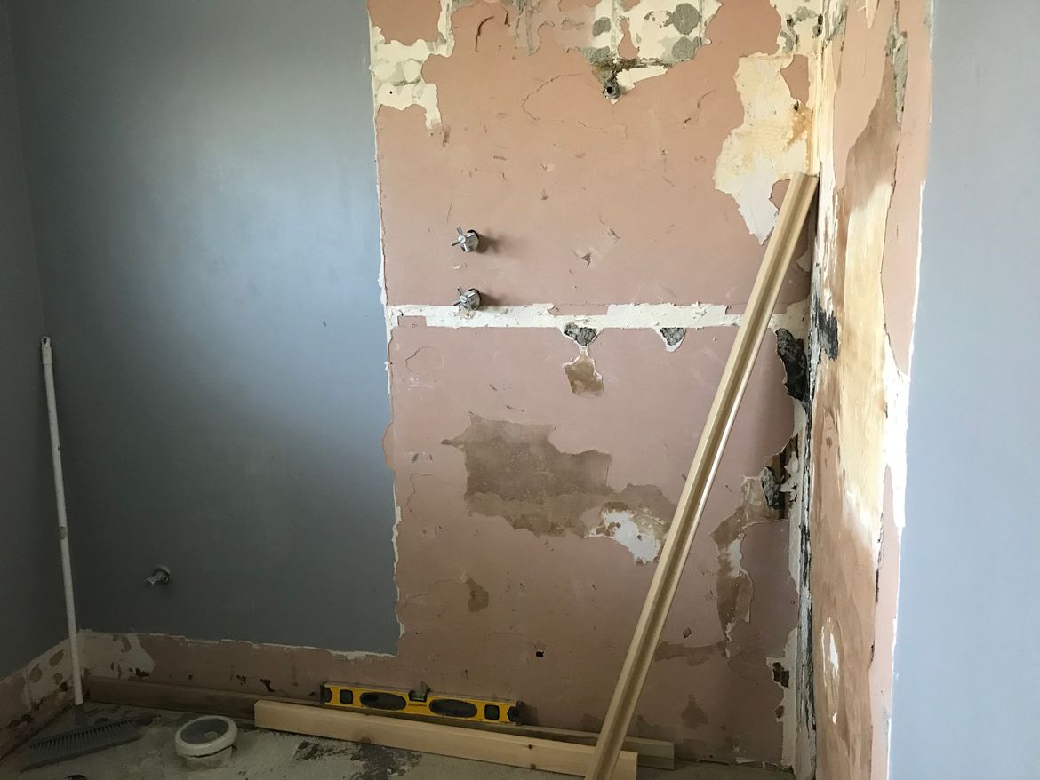 The hardest part was stripping the entire room and removing old tiles, toilet, shower screen and vanity. The floor needed quite a bit of levelling to get the right fall for floor and shower drains which we achieved by adding a screed of cement based tile glue. The same could be achieved using a sand and cement mix.