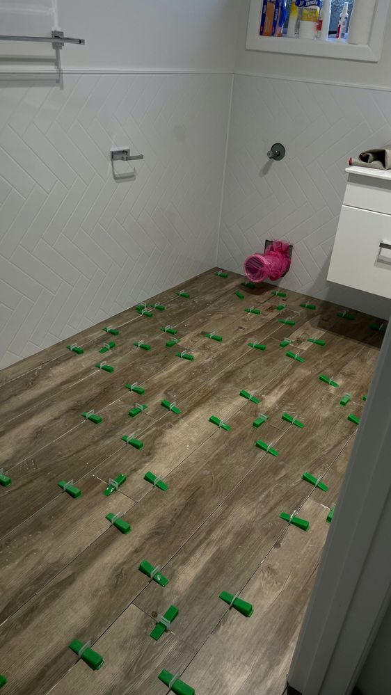 Thank you very much for sharing your bathroom renovation. Your bathroom floor looks fantastic, and I was very thankful that you showed how wet wall area panels were supported while the adhesive was drying. This is definitely going into my bookmarks.