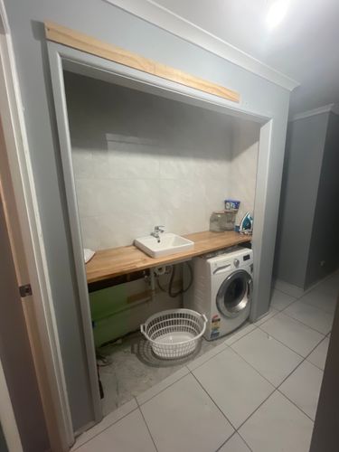 I’m not really sure if I’m fussed about the only being able to access one side of the laundry at a time situation if going with the bypass option as I willl really only be throwing laundry into the machine to wash the laundry and will basically have my laundry tablets sitting on the bench above the machine. On the left side of the laundry I was thinking of putting in the open shelving cabinet by kaboodle but without the doors as I feel having cupboards would be silly regardless of the type of door I put on right? Also bypass does look better and would be easier to install as I would be installing it. The other thing I haven’t mentioned yet which you may already see in my picture is the laundry is in a hallway so I’m thinking wouldn’t bifold doors be in the way when opening them up and be more annoying if that makes sense. Hmm, I’ve uploaded more pictures of my laundry area
