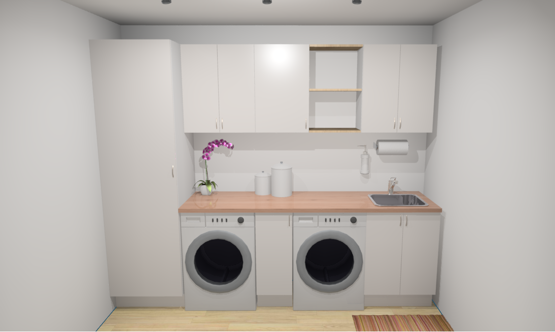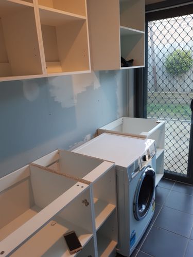 Our drawing is below. I hope it makes sense. The only difference on the plan is the last 600mm cupboard and floating shelves are swapping so that the 600mm cupboard will be above the sink and the floating shelves will be above the washing machine. Just to clairfy the 600mm gap next to the broom cupboard will be for a dirty washing basket and wet washing basket storage. The other reason for this is that when we sell the house in a few years time it means the new buyers can see the house and see that there is a potential to have a dryer in the laundry. We keep ours in the Garage as we barely use it.
