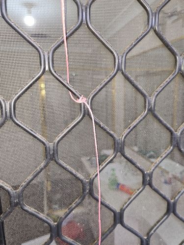 Next we will head back inside, you want to poke a hole in the start and end of the ducting one end cut a short bit of brickie line enough to tie off to something new the inside cut out.