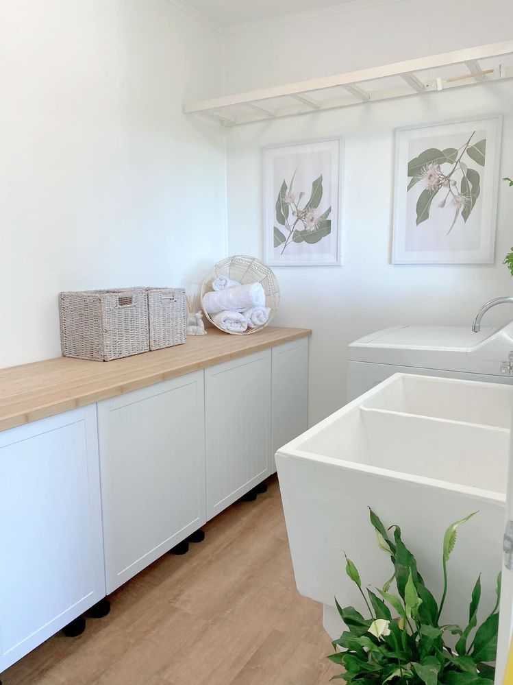 Congratulations on that terrific laundry makeover. You've perfectly managed to introduce coastal vibes in that laundry and created a stylish and functional space. I especially love your innovative idea of hanging a ladder from the wall to maximise drying space.