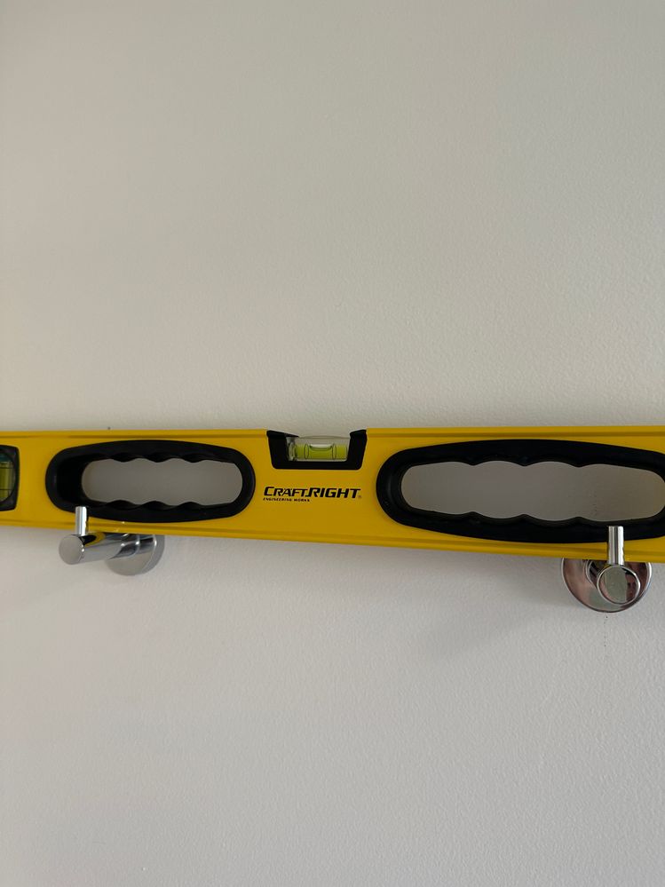 Finished shot of the hooks. Hanging space has been doubled. Very handy in the colder winter months, especially as our bathroom does not get much direct sunlight. Would highly recommend to everyone - owner or renting!