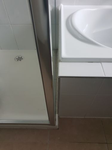 Just wondering the best way around fix this gap between shower panel and tiled bath. It collects dirt and is difficult to clean. Do i need to install a new shower or is there something that I can cover it with