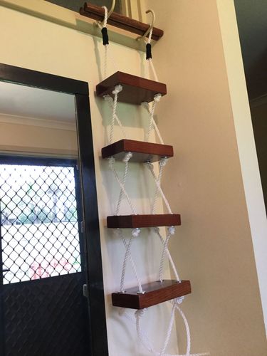 I delibrately made the shelves a bleach bottle apart, to store bleach if I wanted. lol as you do. The positioning of the knots was fiddly. But once i applied super glue there was no going back to adjust. Because of the Criss cross design it is more unstable, so I cut two piece of wood from my broom handle and used those up the top to give it more support and stability. Thank again for the comments, and have a great weekend.