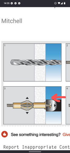 Hi MitchellMc, Thanks for your post, however I would like to point out a pretty big oversight that needs to be amended. After tapping the anchors into the predrilled hole you are required to then tighten the screws in order to activate the expanding of the anchors before undoing the screws and taking them out of the anchors to fix the hook in place. The diagram is equally misleading. Please amend the diagram to show an arrow pointing in (ie tightening) as the anchor expands.