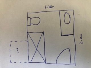 so I’ve measured c. Additional 25cm we could get in the bathroom width without having to move the external laundry window (although would stump up the cost if it’s going to get a better result). This would bring the width to 2.28m and I’ve drawn up a little mock up with shower, toilet and vanity and am thinking of rehanging door to open against the wall instead of against the shower as current.
