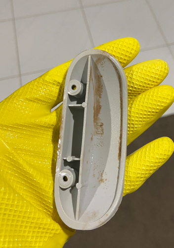 Is there a way to clean the stain ion a Stegbar door handle (Shower screen). Tried using vinegar and dishwashing soap with stainless steel scrub. Does not help. Grout brush does not help either.