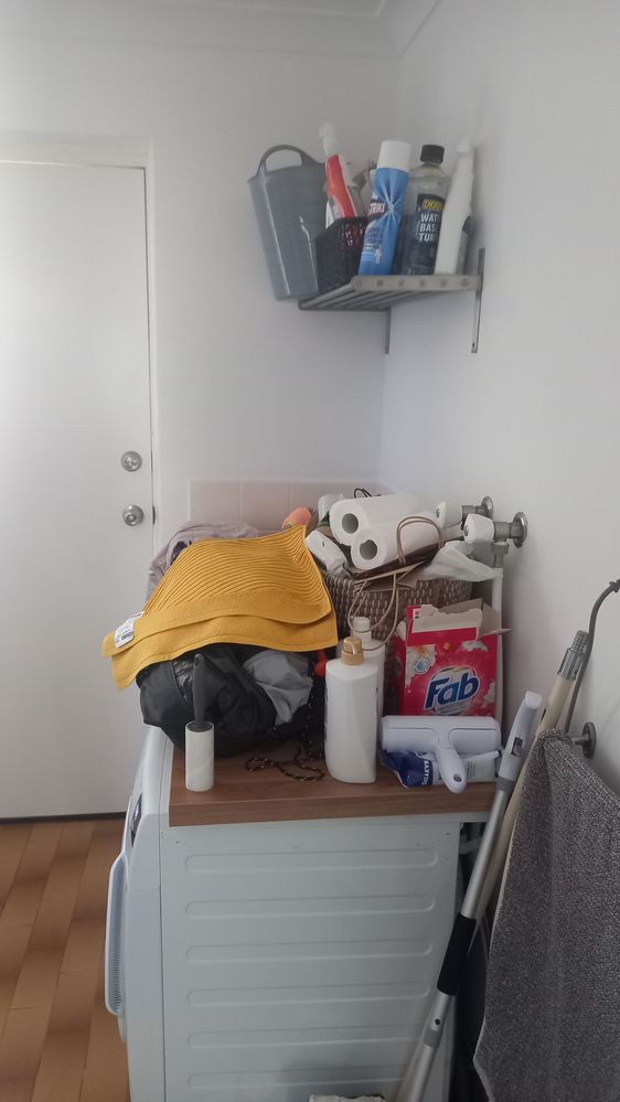 I need a little help please. I am about to start a DIY renovation of this bathroom/laundry on a budget. Right now I am struggling with the lack of laundry storage and the small gap between the washing machine and the shower.