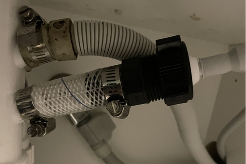 Like many others I was disappointed to find my new clothes dryer drain pipe did not easily connect into standard Australian laundry sink plumbing installations. I have expressed disappointment to the supplier for providing a European solution on a product being sold in Australia. After reading about many solutions online and also considering those in the above thread, I wanted to create a solution that was as elegant as possible and incorporated the items included in the dryer installation kit. In particular I wanted to fit pipes as they were meant to be used. For example, not pushing a pipe into the sink trap barbed tee but pushing over it.