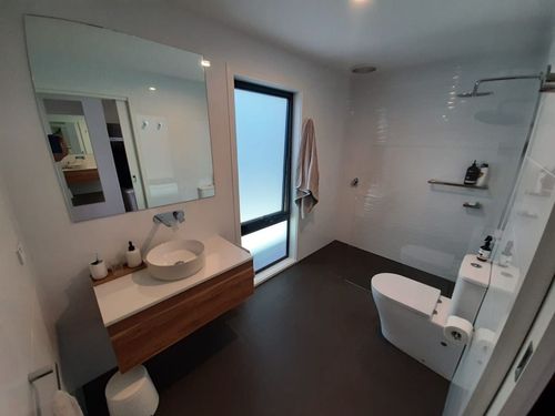2. Take up all floor boards and lay 19mm Scyon board across the room, except for shower are, drop floor and installing noggins for the shower tray. Waterproof and lay tiles.