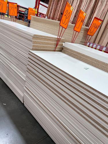 Laminated panels are the perfect material to use to build your tall kick board. However, the edges must be properly sealed if it is to be used inside a high moisture area. You can either paint it or fill it with white silicone. To keep it off the floor, I recommend using Surface Gard 22mm Black Round Rubber Bumper - 6 Pack or similar. It comes in various sizes and shapes so please choose carefully. You can also use plywood or pine panels. But these must be painted on all sides if it is to be used inside the bathroom.