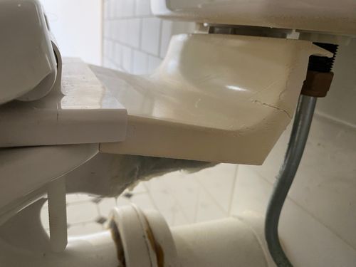 Hi, I replaced Mum’s toilet seat a little while ago with a Caroma one shown in photo. The old connector plate from the Fowler porcelain cistern to the new seat is discoloured and broken on one side (see pic). I bought an Estrelo replacement from Bunnings today and cut it to size, but it seems too narrow (19.5cm W). The old connecter plate is 21.5cm wide and seems to slot into the back of the new toilet seat. I don’t know what connection plate to buy to fit the cistern and the seat? Can you please tell me what will fit?