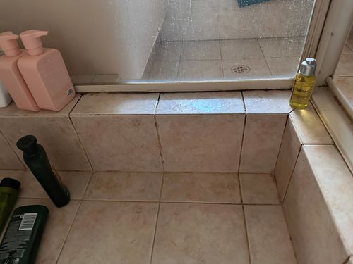 Once everything is dry, you'll need a caulking gun and some Sika Translucent Kitchen And Bathroom Silicone Sealant to seal the gaps. Pay close attention to the grout lines because they are the low spots where it's likely water can get out. Apply enough silicone to cover the gap and strike it off using a Silicone Scraper to get a nice clean bead.