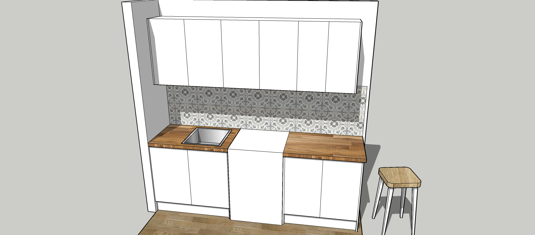 I live in an old cottage. The laundry was removed but left sink & washing machine taps. I have a space of 1.10mtr from wall but the taps are .400 from wall where the tub will sit. Can you help with the layout & diy cupboard to use.