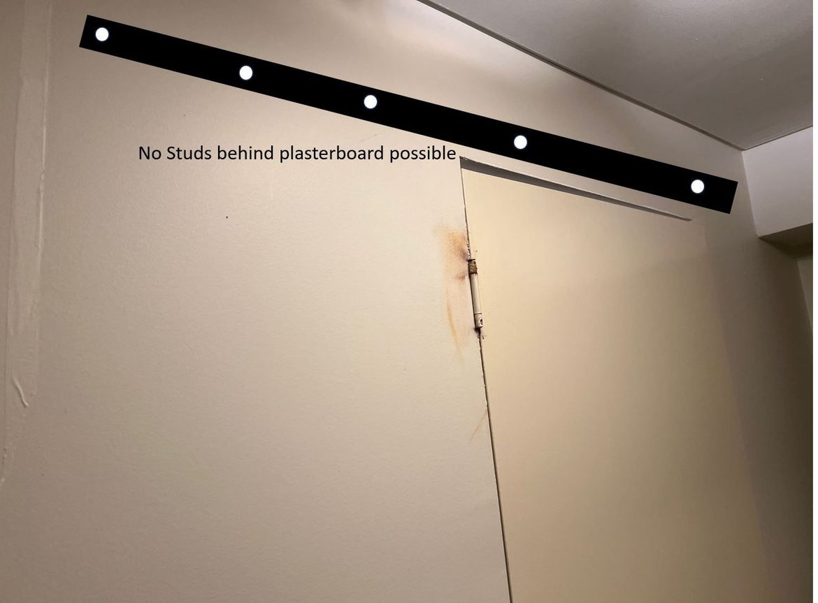Hello, I'm a little stuck as I purchased one of these kits and there are no appropriate Studs/Timber at the back of the drywall. My question is whether I can still go ahead with installing these 5 screws (M8 scrws) and attach a door with the wheels. Not sure if there are any other options possible, Thank you so much for the help in advance!!