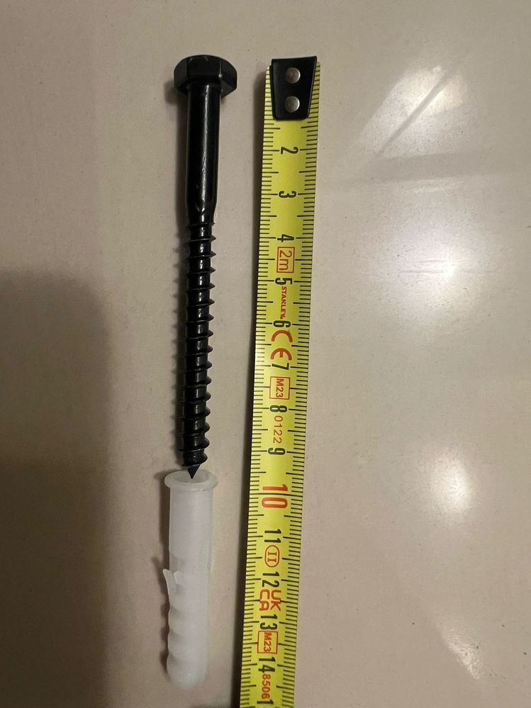The rails come in 4 separate pieces and there are 5 x M8 screws to be drilled in. I cant get a normal plasterboard anchor to work as there is this cylinder spacer between the wall and the rail.