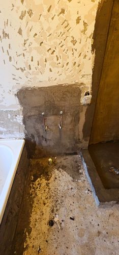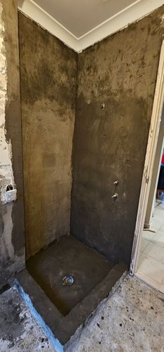 Hi im renovating my bathroom that was only tiled in shower and around the bathtub.the rest of the walls have a thin layer of wight powedery stuff and was painted. I have chissled the walls and scraped as much paint off as possible,