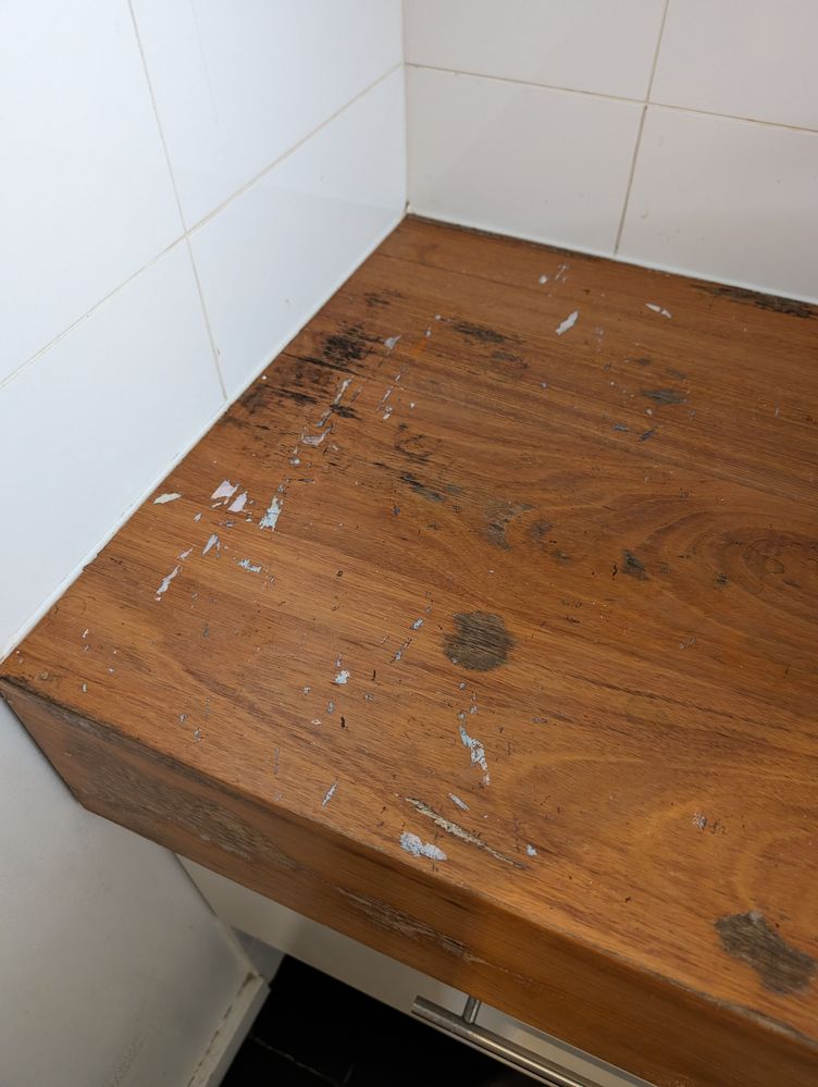 Re: How to re-stain a timber bathroom vanity benchtop?