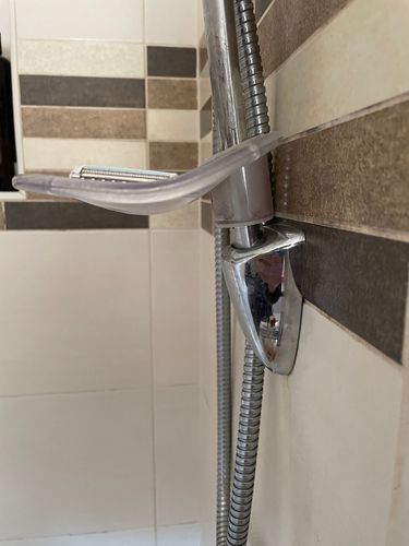 hopefully this is a better photo. I can’t find any screws to take the shower rail off the wall.