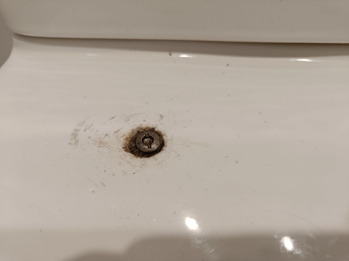 I have been attempting to remove the screw and the block of cement from the toilet, however this is proving very difficult. Does anyone have suggestions for what else I can try?