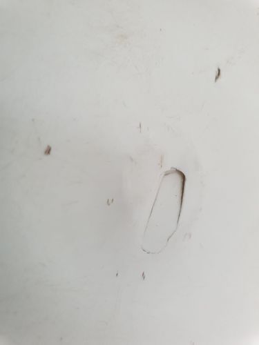 Went to run a bath today and discovered some damage in the bottom and what looks like a small hole.