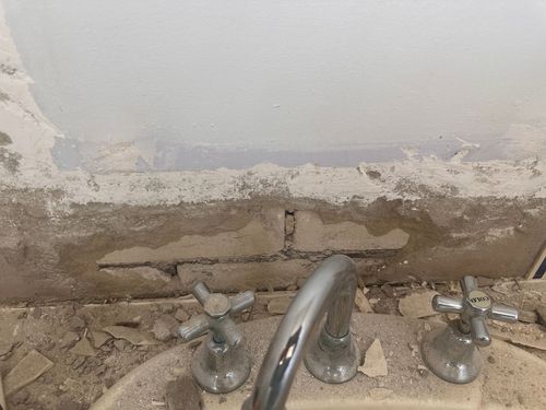 I was removing the black splash above the sink when a chunk of cement came off with the tiles and now the brick is exposed. How do I repair this?