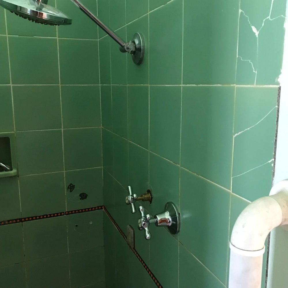 The bathroom shower taps are getting to unusable and also past the point of maintenance. Replacement time . Trick is the plumbing is in the concrete walls behind the tiles in the picture.