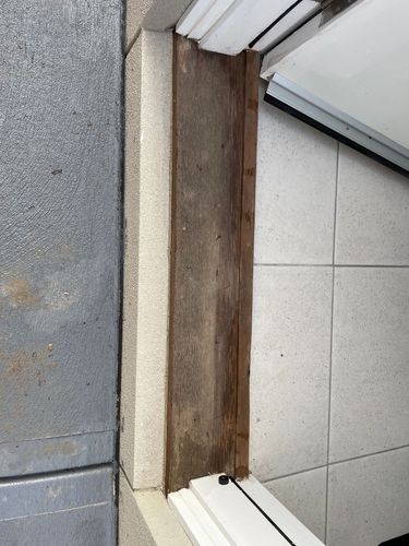 That's a bit of a tricky one because the door opens inwards and the existing timber sill has a lip that should be doing a lot of the work keeping the water out. Because the door closes over this lip, the gap under the door is fairly large.