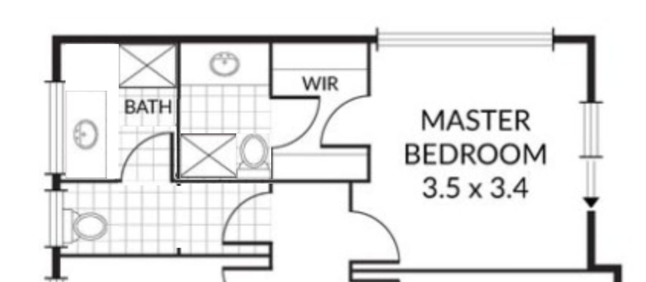 Yes there is a shower next to the bath where X is shown.i don't want bath but ensuite with shower and toilet+ main bathroom with shower and toilet. I am concerned about the window because i am not sure how I can do water proof it or is there other way. Thanks in advance