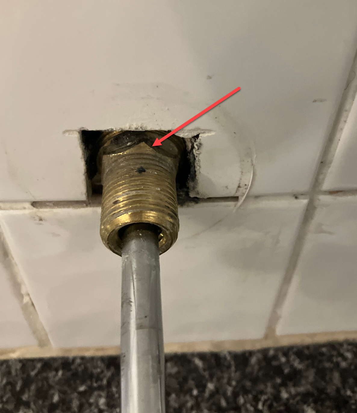 It looks like you would be able to get a tap spanner around it if it was just a little bit higher. If there was a tiny bit of play in the pipes, you might be able to get the spanner around it.