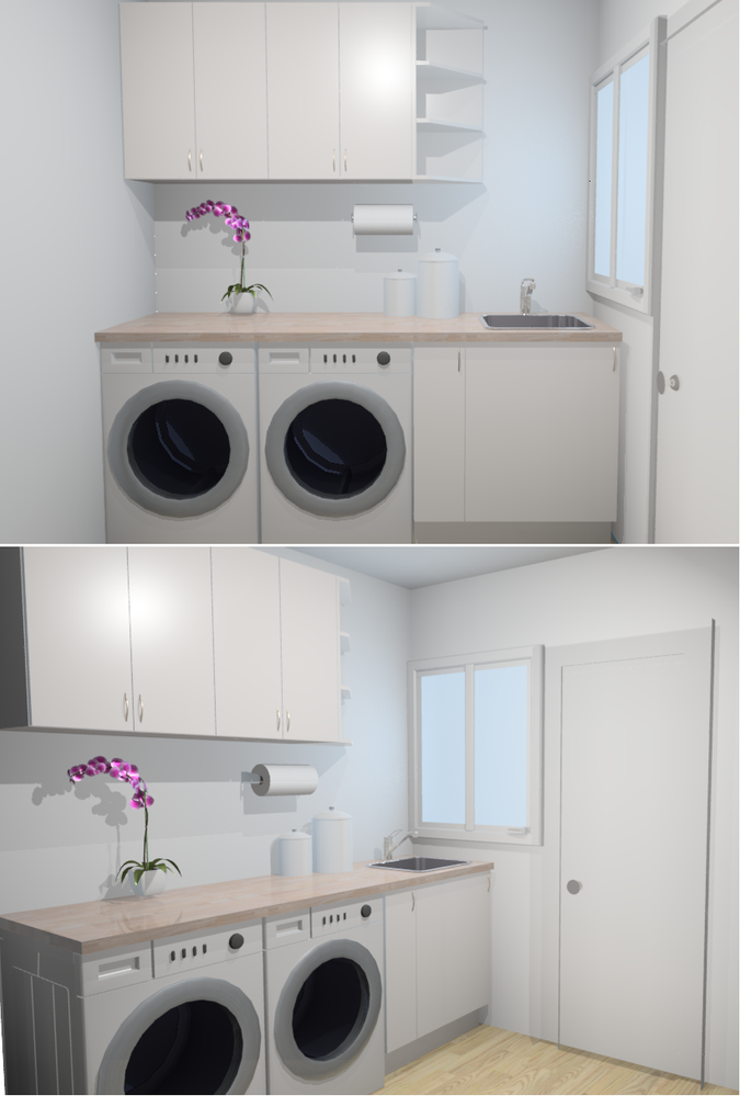@MitchellMc, never crossed my mind about stacking the dryer on top of the washing machine. The first one is looking very simplistic, which is nice, but I'm loving the second one with more functional bench space. Looking forward to see if other members can share more ideas.
