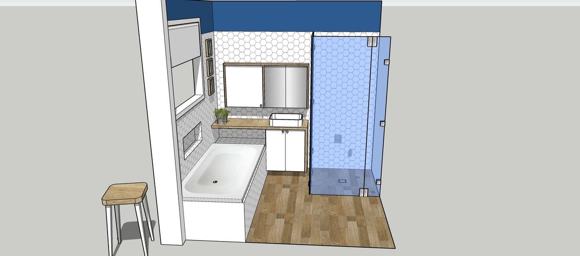 The internal depth of the bath is very shallow, more like 25cm due to the insets on the bath rim etc. I've been told it's a very old cast iron tub, great quality but just not practical for us. Depth is the main priority, but more length would also be ideal so I do like the way @EricL has configured to have the bath running along the window. There's not much outside that window, it looks into our backyard, with a lovely view of the carport 😅