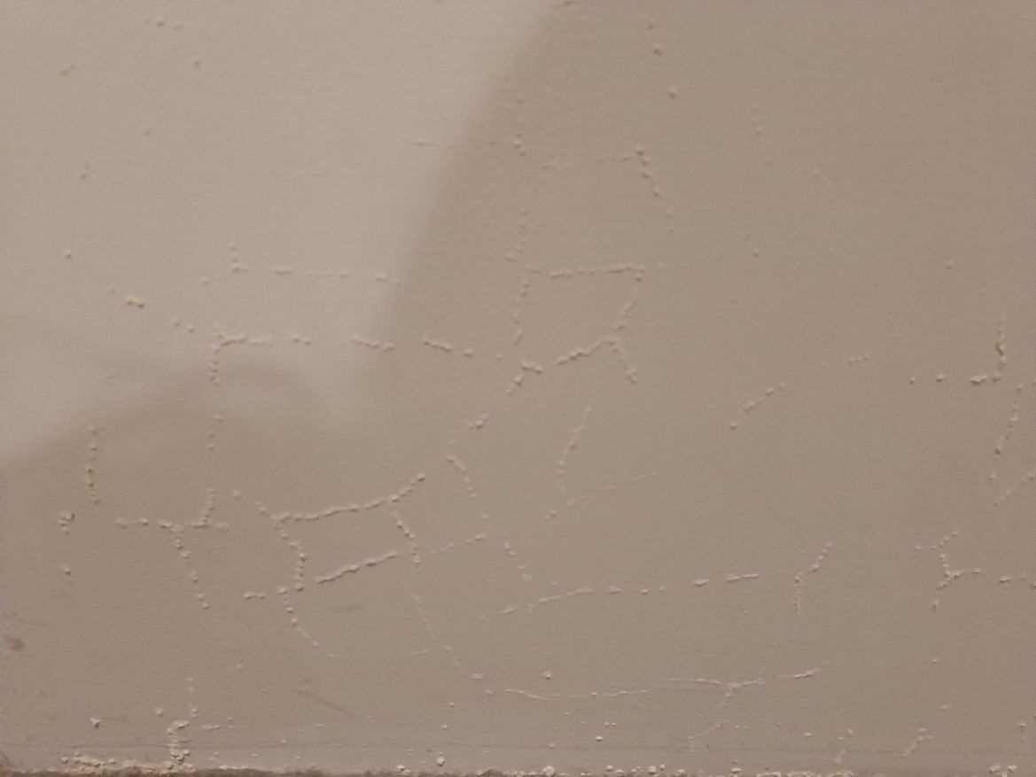 Please see the photos of the wall on the opposite side. The red circles correspond to where the majority of the cracks are on the other side.