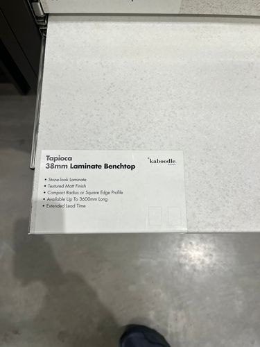 SO. What I would love to do is just order a laminate bench top from the Kaboodle range (Tapioca or Coconutty colour) to fit the size of the 900mm freestanding vanity unit on display at Bunnings.