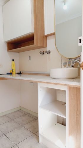We then installed the laminate benchtop and the bottom 450mm cabinet with a timber panel as a feature