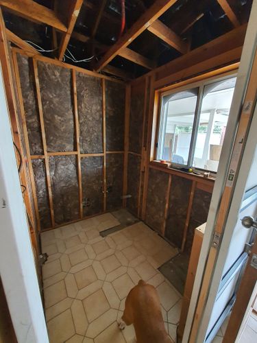 We added a sliding cavity door and a saniflo compact toilet, as well as insulating the space due to the washer being in there.