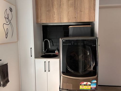 This is a great little laundry that looks modern and maximises the utility of the space.