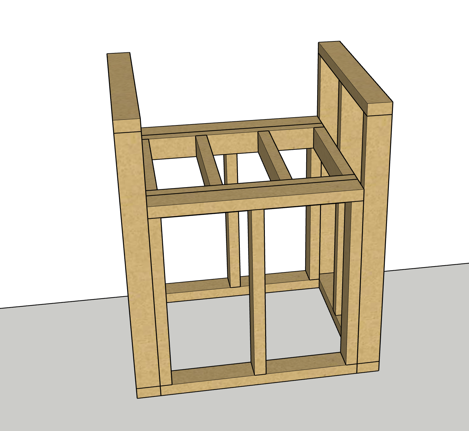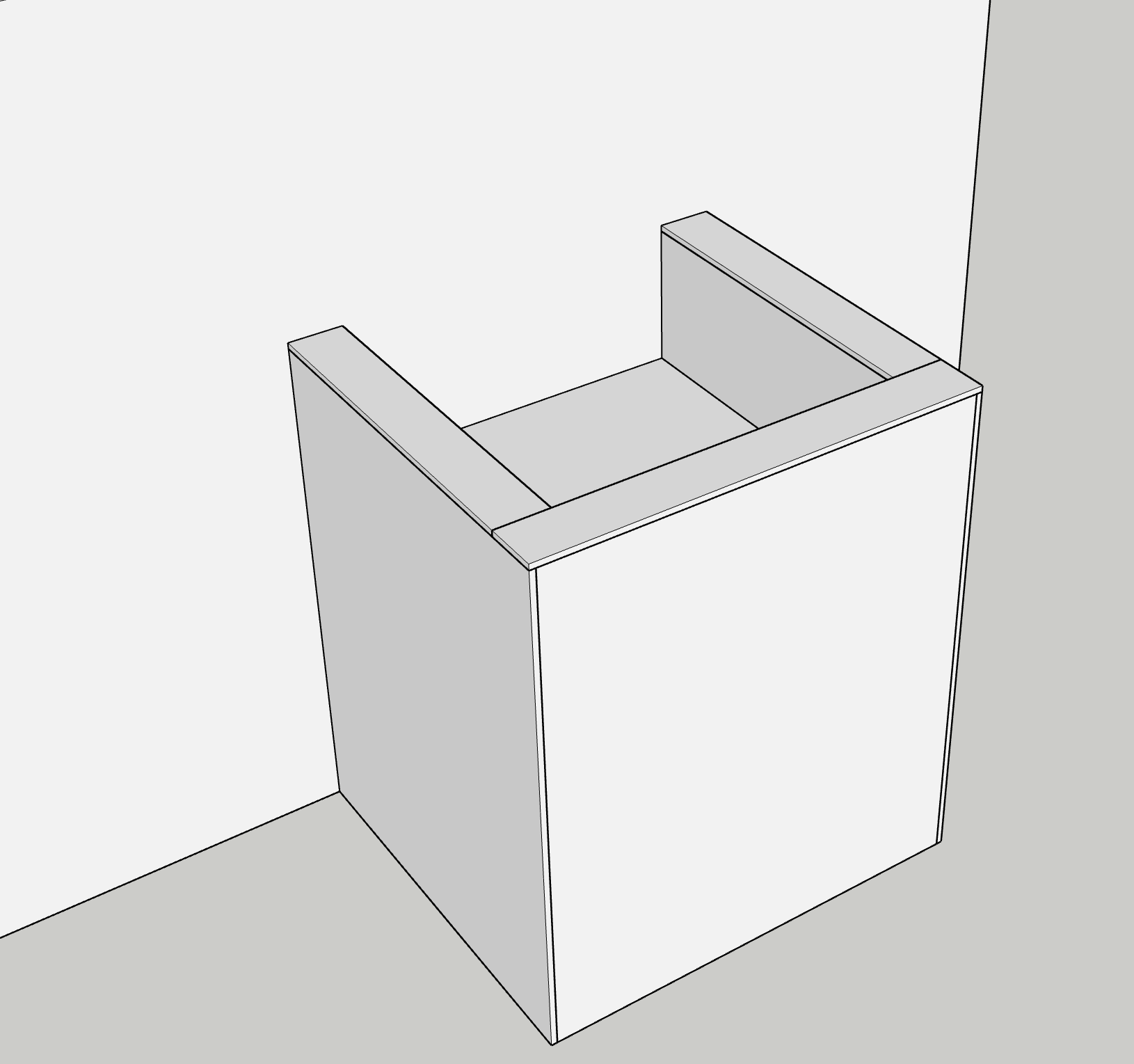 You'll then add three frames that encapsulate this platform. Note that the back of the basin is tied into the wall, so there is no frame added here as the wall will close in the back side of the basin. The white sheet at the back of the basin represents this.