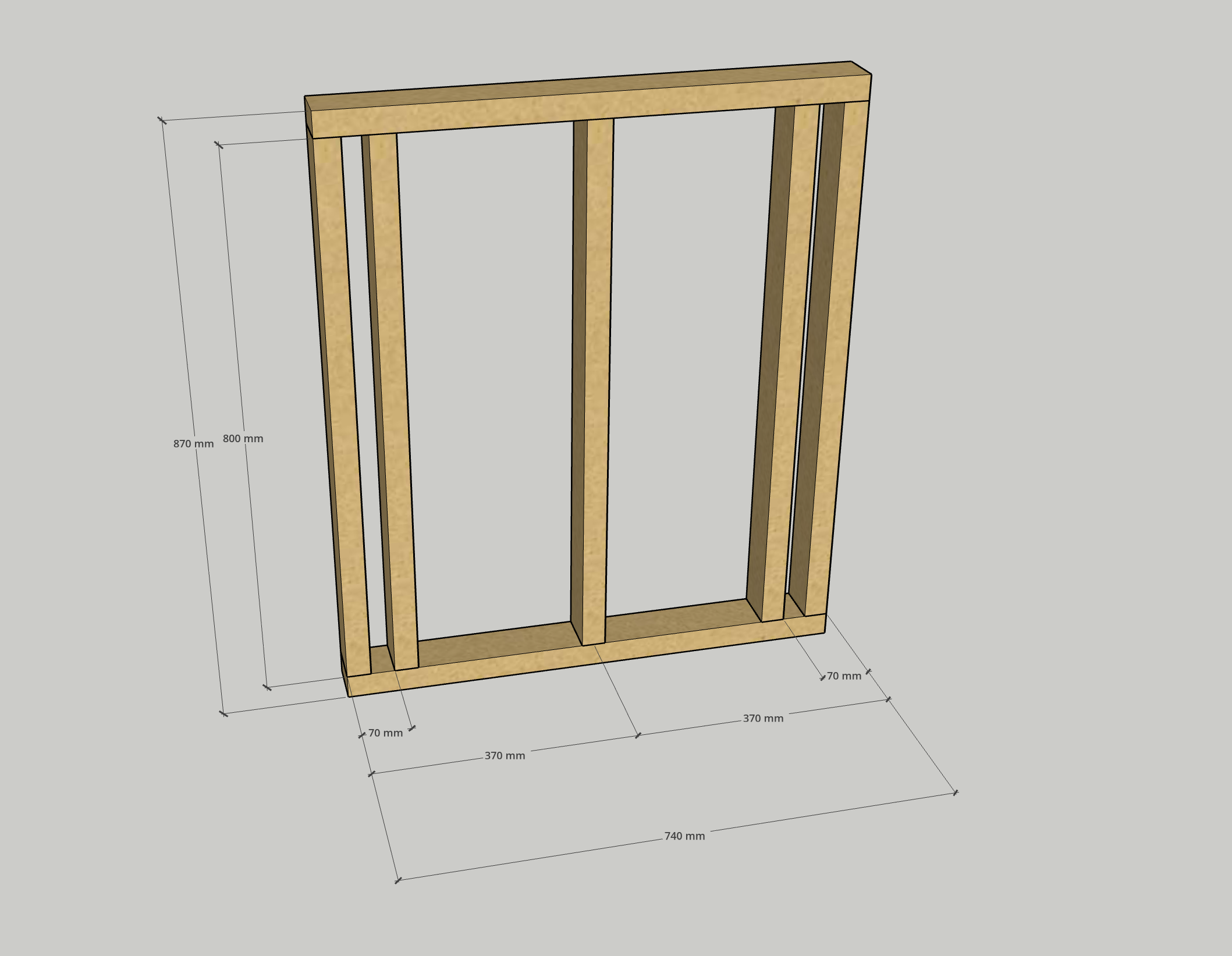 The frame will be made of 70x35 framing pine and fixed together using framing nails fired with a framing nailer. You will essentially be making a series of stud frames and joining them together, so check out How To Build a Stud Wall for a bit of guidance on the process.
