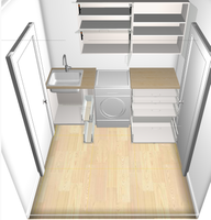It's a walk-through room not unlike @Nham's really neat laundry renovation here, but with some extra width (again, floorplan below). BUT the Minister of Home Affairs wants to keep our top-loading washing machine, which kinda kyboshes any plan for having a nice benchtop, like all the laundry renovation posts I've seen here. Apart from that, a fold-out ironing board and some overhead cupboards would be neat.