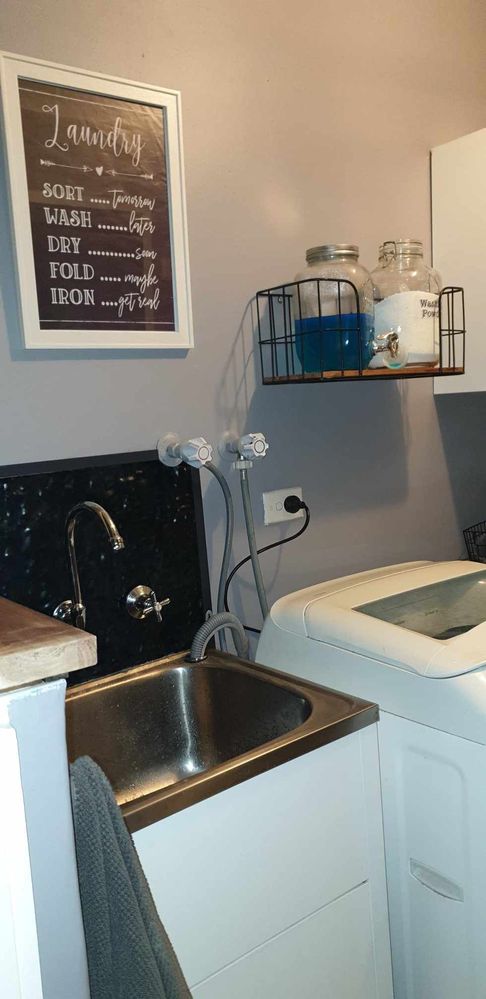Your laundry renovation looks fantastic. The pressed tin splashback adds a unique touch, and the combination of black doors with blue-grey walls really makes a statement. I love the warmth you've brought to the room by incorporating the timber benchtop, too. It sounds like you learned a lot and gained valuable D.I.Y. skills throughout the process.