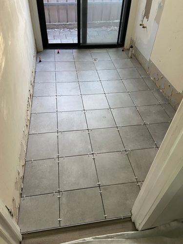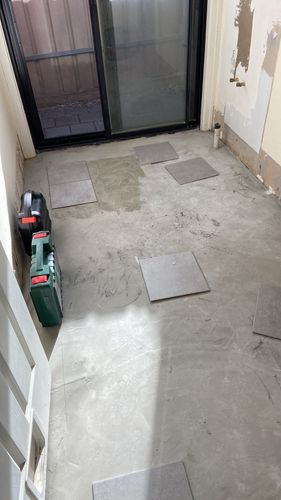 If I was to do it again I would get a tiler in when the old tiles were pulling up the screed. I'm a total newbie and fixing that was beyond my ability, but I gave it a go. Luckily the tiler was able to work with the floor without having to rip it all up again. It would have been a better job if he did but it would have cost a lot more too. He may not have been able to do it either as he fit me in between other jobs. Most tradies are booked out for months so I was very lucky.