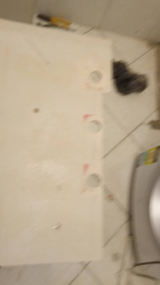 Once trimmed to size I had to drill the holes for the tap fittings. I used a diamond bit hole saw
